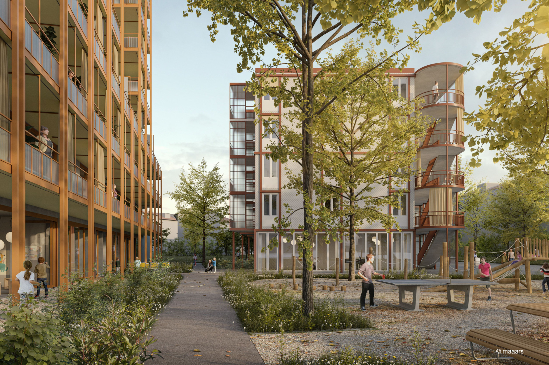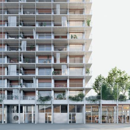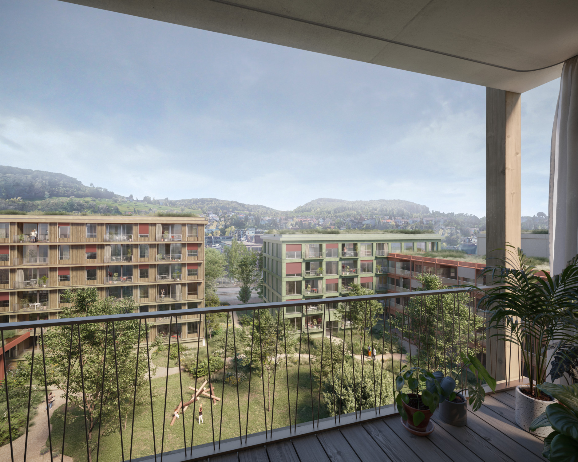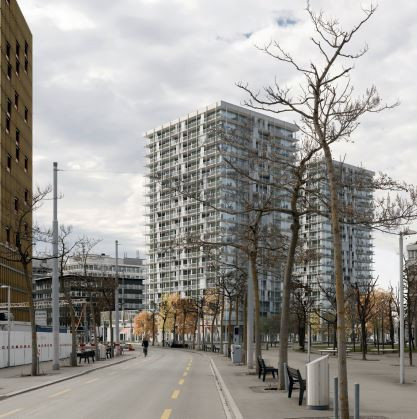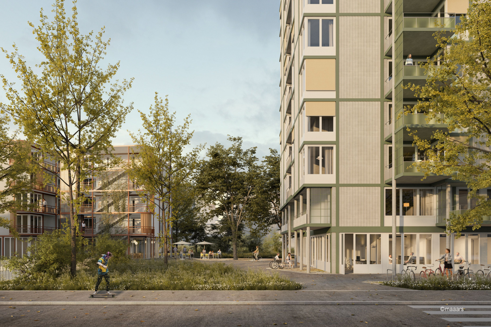Neubau Wohnüberbauung / Wohnsiedlung mit ca. 275 Wohnungen, Hochhaus, Familien-, Alters-, und Pflegewohnungen, Beherbergungsbetrieb [a], Kindergarten und Einstellhalle